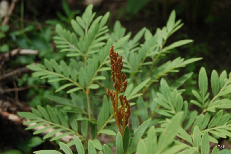 Osmunda lancea, to niuanse typu ... bardziej podłużnego kształtu zarodników. W naturze, oba te gatunki często krzyżują się, tworząc naturalna hybrydę Osmunda x intermedia.