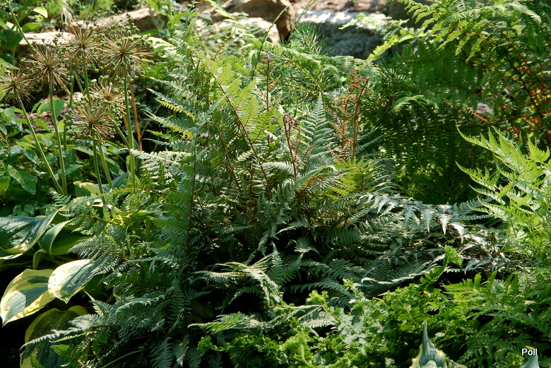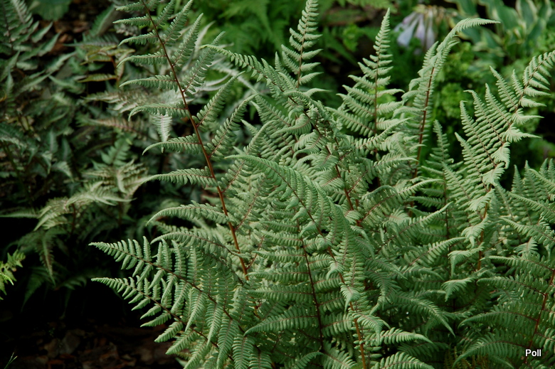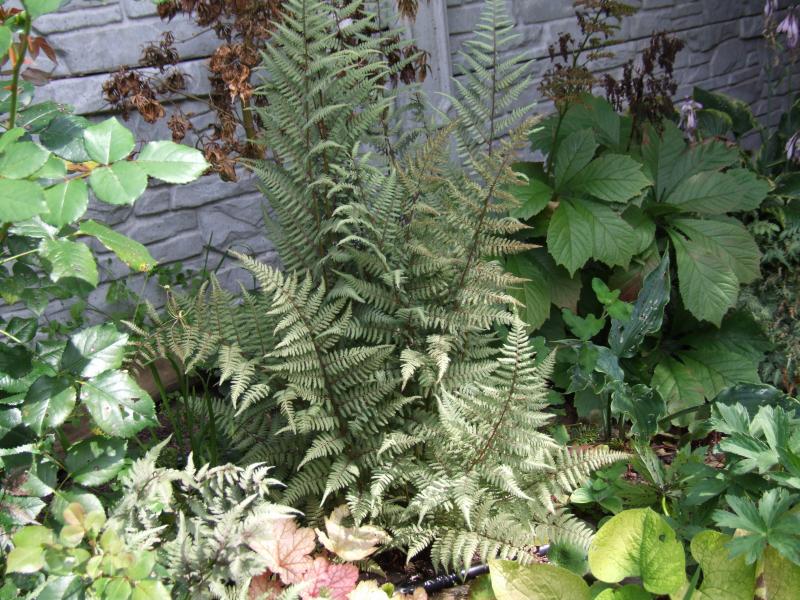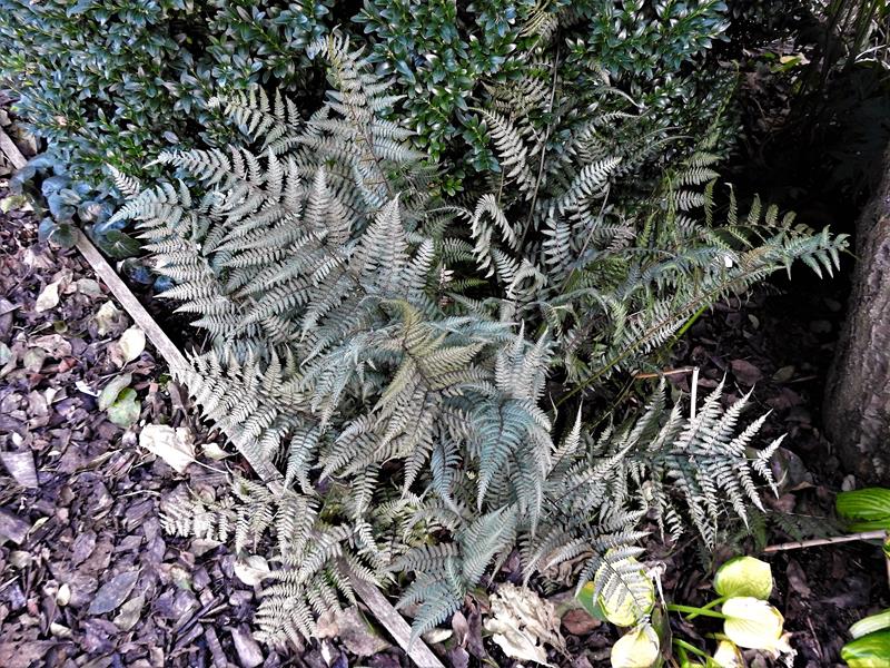 Athyrium niponicum pictum . Dlaczego piszę 'oficjalna'? Paproć ta została odkryta ponad 20 lat temu przez entuzjastkę paproci, Nancy Swell. Pośród partii roślin pozyskanych z wysiewu