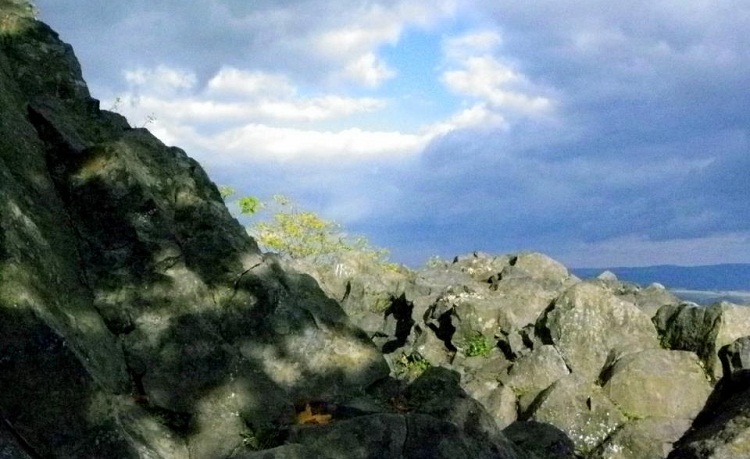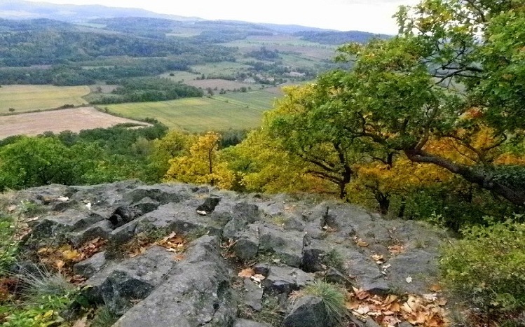 Asplenium septentrionale rośnie tam na zasadowych, bardzo suchych stanowiskach, we wgłębieniach bazaltowych skał niemal w pełnym słońcu . Szukałam jej w cienistej części masywu poniżej szczytu, ale bezskutecznie. Tylko na samej koronie, w olbrzymich blokach skalnych znalazłam kilka stanowisk
