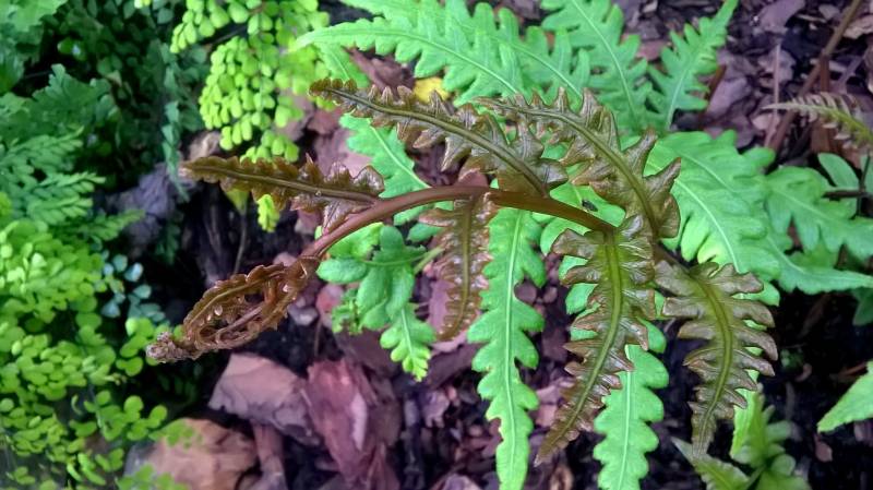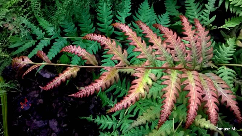 Woodwardia unigemmata ma jednak to do siebie, że produkuje młode liście niemal cały sezon, więc oryginalnym kolorem paproci możemy cieszyć się aż do jesieni.
