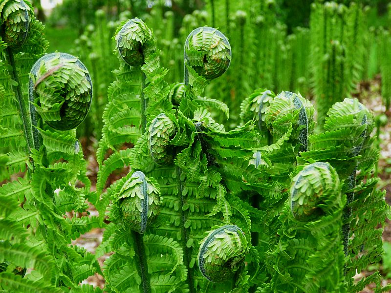 Cudowne widowisko rozwijania się młodych frondów pióropuszników strusich