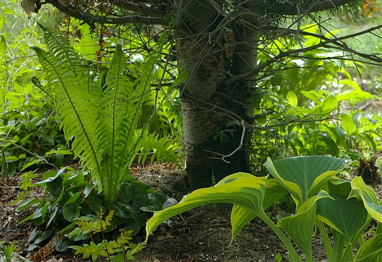Tez zauważyłam, że muszę kolejny raz przystąpić do walki z tą agresywną paprocią. Wydawało mi się, że usunęłam pióropuszniki nad rzekę a tymczasem one przetrwały i ukryte pod i miedzy hostami, zupełnie nieźle się mają. Jak tylko będzie można wbić w ziemię szpadel, zabieram się za wykopki.