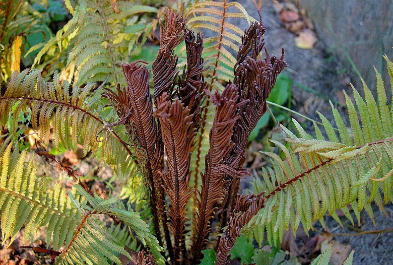 Ubiegłoroczne, zbrązowiałe sporofile pióropusznika - zdjęcie sprzed kilku dni