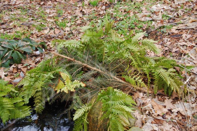 Moje nerecznice czerwonozawijkowe zimują pod symbolicznym przykryciem - gałązki iglaste ochraniają tylko kłącze paproci.