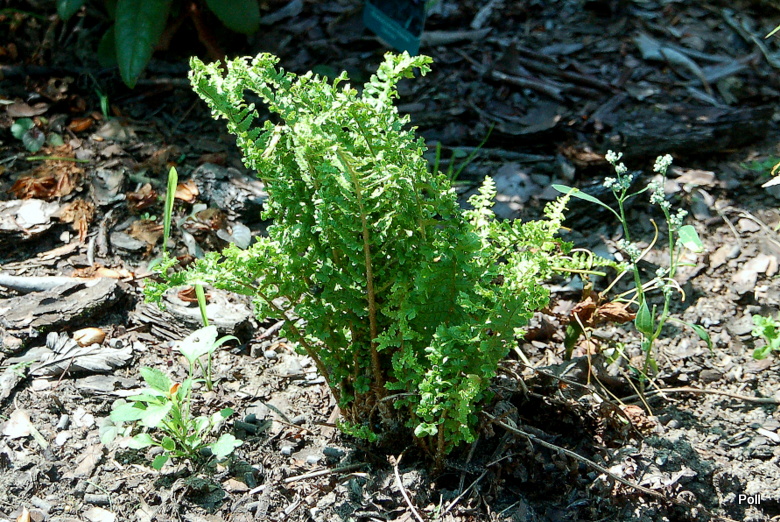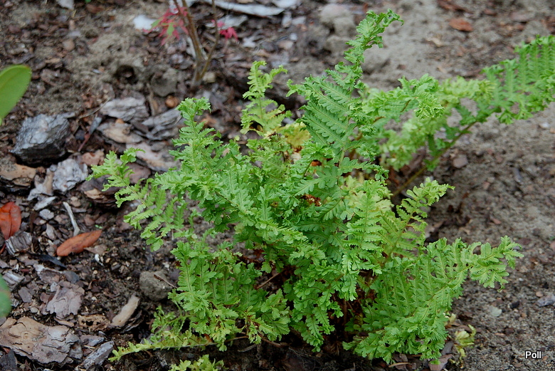 Po ubiegłorocznych podziałach ( w ryzykownych warunkach, bo w gorące dni lata) mam teraz cztery kępki Dryopteris filix-mas 'Parsley'. Trzy rosną na jasnym stanowisku, jedna w bardzo ciemnym, niewysychającym... To tak dla porównania. :nie_wiem