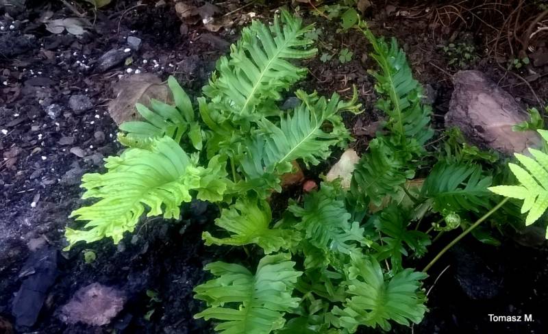 Jedna z kęp Polypodium cambricum 'Cristata' na nowej rabacie ze sporym słońcem ;)