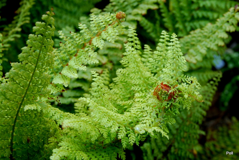 Polystichum setiferum 'Weihenstephan' , cały czas wypuszcza piękne, puszyste pastorały.