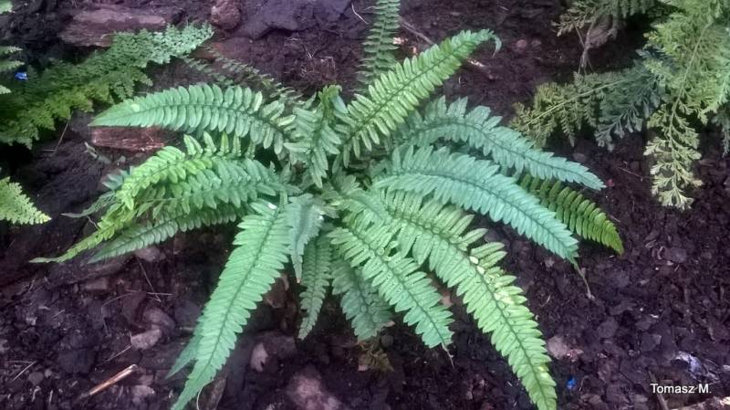 Polystichum otophorum rośnie u mnie drugi rok. Wygląda, że dobrze zimuje i rośnie dość dynamicznie. Za stanowisko ma wilgotne, ale dość jasne miejsce na stoku paprociowym.