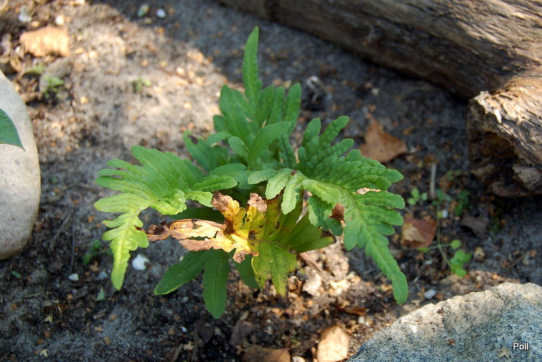 Polypodium cambricum, dość późno rozpoczyna sezon wegetacyjny, czasem nawet dopiero w sierpniu. Nie warto więc zbyt wcześnie martwić się, że paprotki zwyczajne już mają gęste liście a ona jeszcze nie pokazała wcale pastorałów.