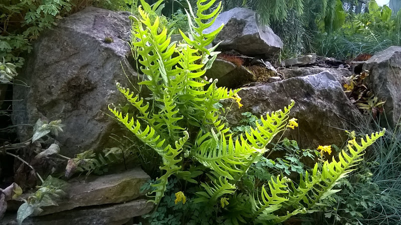 Inną miłą dla nas ogrodników cechą jest jej 'odpornośc na jesień'. Nawet po pierwszych sporych przymrozkach jej liście nadal sa w doskonałym stanie. Na zdjęciach Polypodiuminterjectum w październiku'2015r