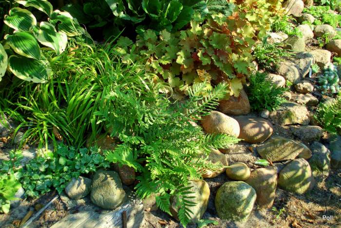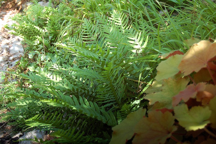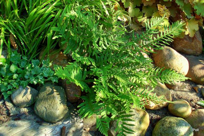 Moje Polypodium interjectum pomiędzy kamieniami ułożonymi wzdłuż ścieżki.