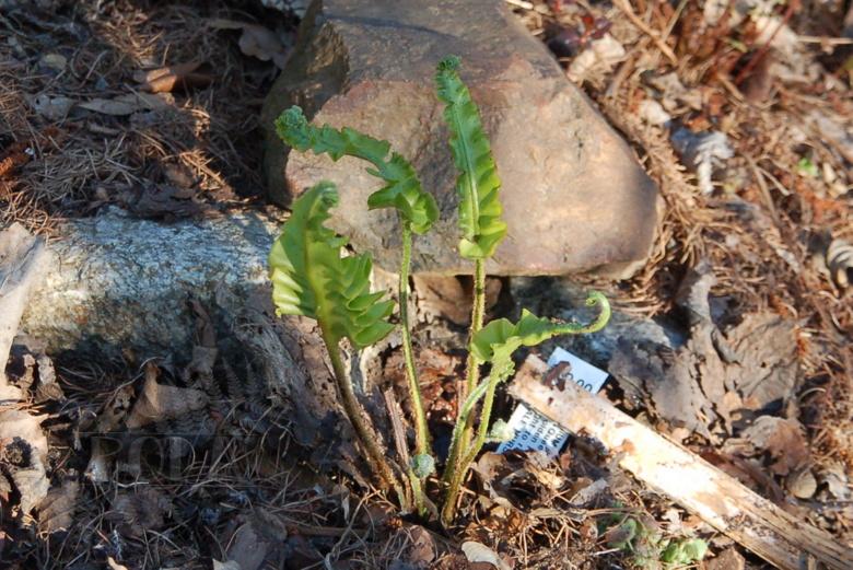 Asplenium scolopendrium 'Golden Queen' wiosną