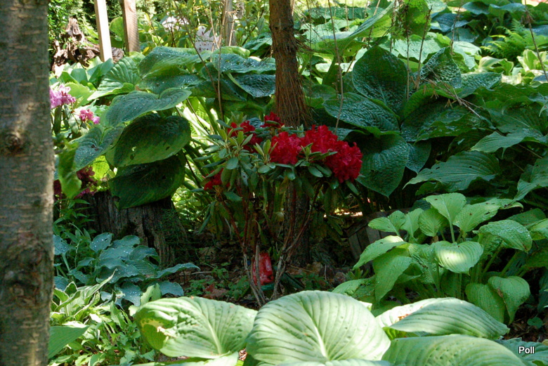Po przekwitnieciu został zasilony Magiczną Siłą do różaneczników a że rośnie wśród host, jest sporo podlewany.
