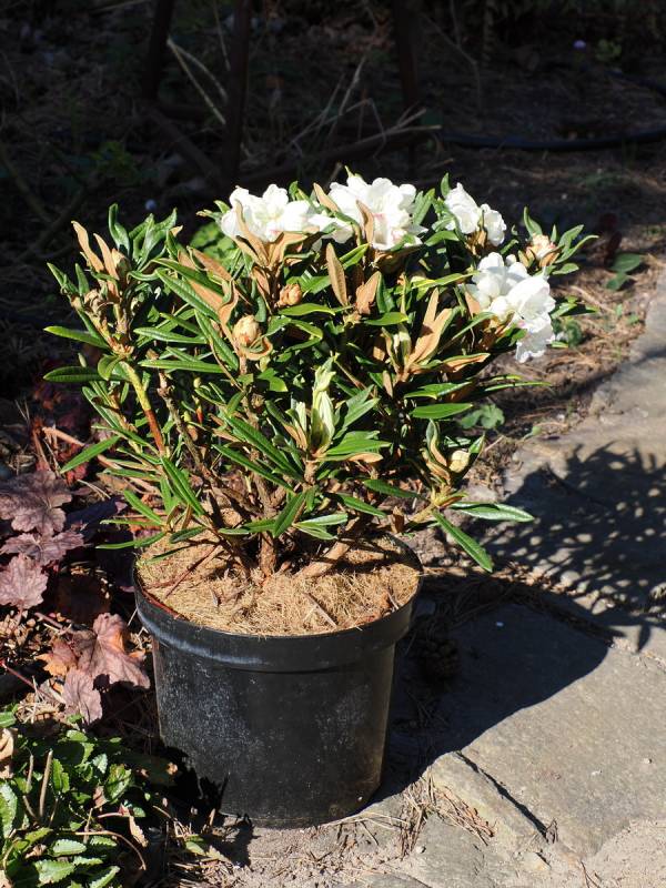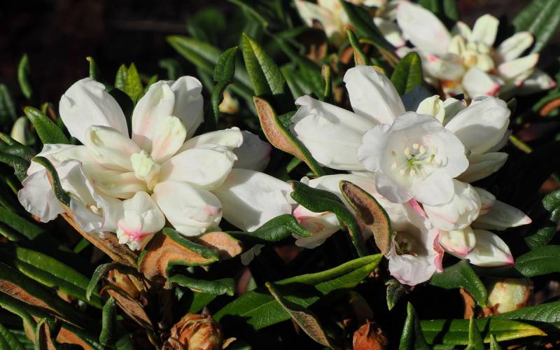 Rhododendron roxieanum var. cucullatum - ma najszersze liście, najgrubsze indumentum i jest największą odmianą tego gatunku w uprawie
