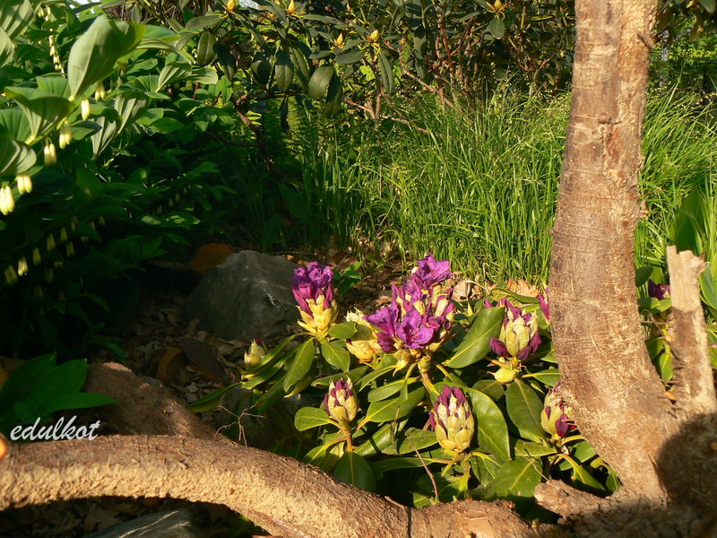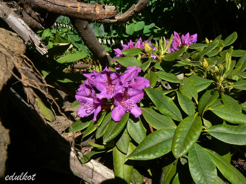 Mój różanecznik 'Azurro' rosnie w pełnum słońcu, z dużą ilością wilgoci pod stopami. Własnie rozpoczął kwitnienie