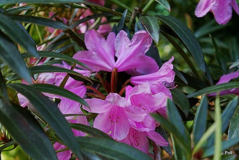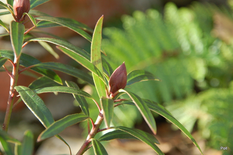 Mimo słabej mrozoodporności, to jeden z moich ulubionych różaneczników. Kiedyś Siberka napisała, że w różanecznikach podobają się jej najbardziej nie tyle kwiaty, którymi cieszymy się krótko a ciemnozielone liście, jako tło dla innych roślin. Graziella nalezy do tych, których liście są bardzo ciekawe - ciemnozielone i wąskie. Także pąki są oryginalne - wąskie, bardzo szpiczaste i mają bordowy kolor.