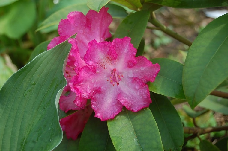 Liście: ciemnozielone i lekko błyszczące z wierzchu, od spodu z ciemnobrązowym indumentum... eliptyczne, lekko wypukłe... o długości do 9,8 cm przy szerokości do3,6 cm... młode pokryte delikatnym kutnerem