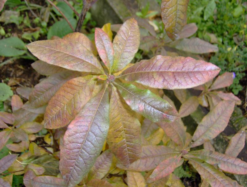 Liście: sezonowe, z wierzchu jasnozielone i błyszczące, od spodu szarozielone... eliptyczne, lekko zaostrzone na końcu... o długości do 4 cm... młode delikatnie czerwonawe... jesienią przebarwiające się na żółtozielono