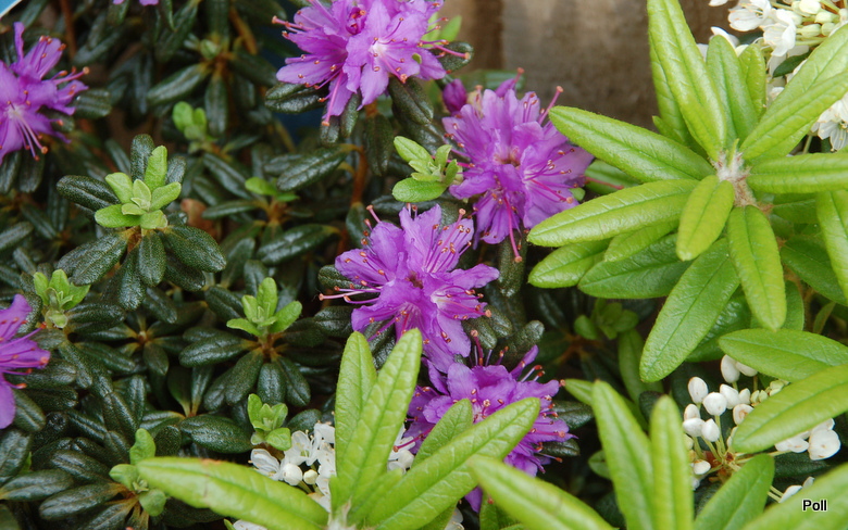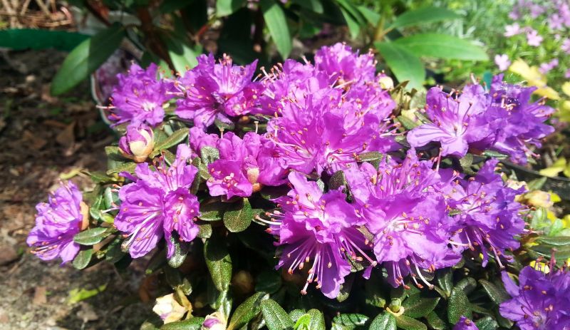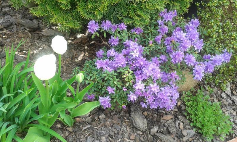 'Purple Pillow' po prawej a po lewej Rh 'Azurika'