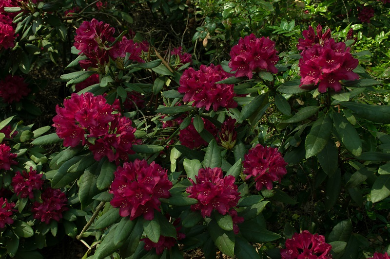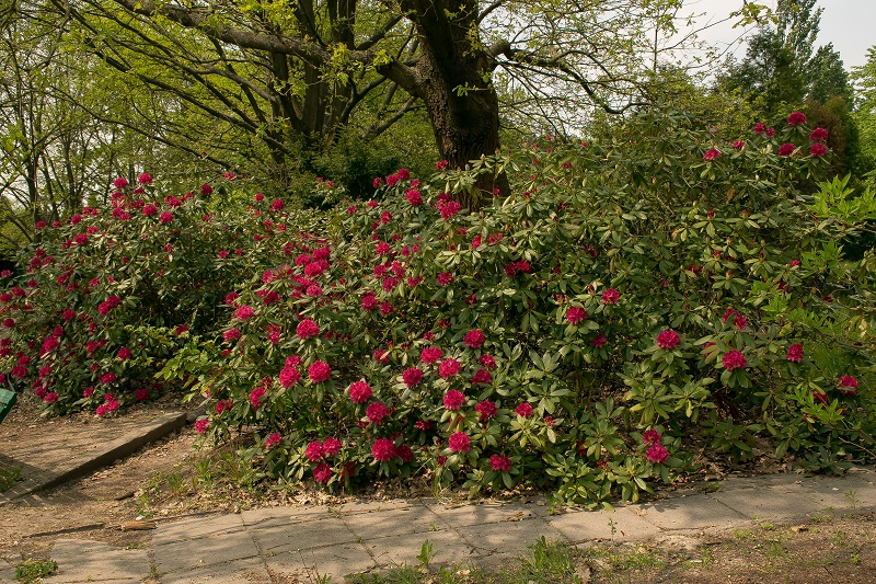 Różanecznik 'America' jest odmianą dość licznie reprezentowaną w Powsinie.