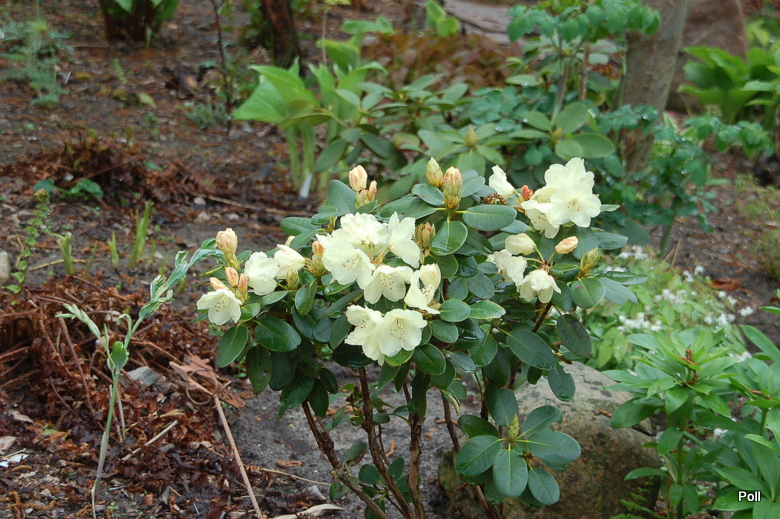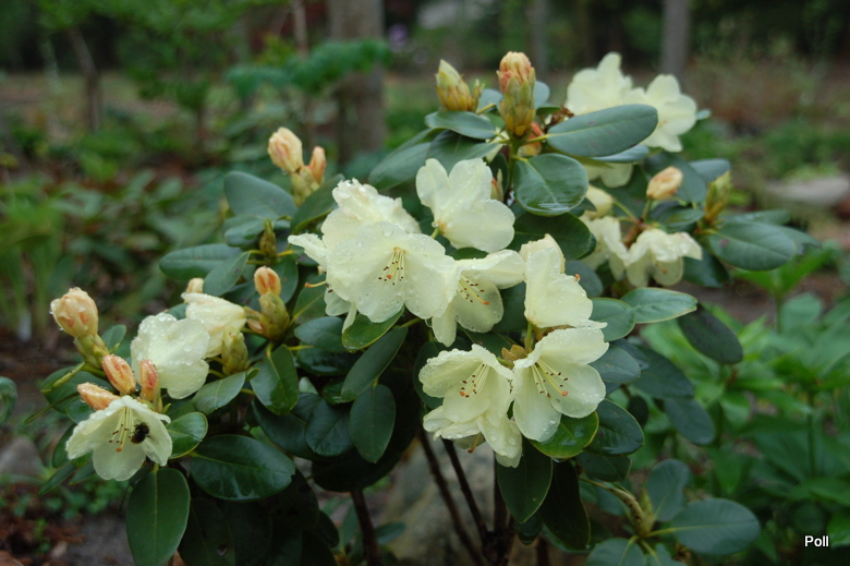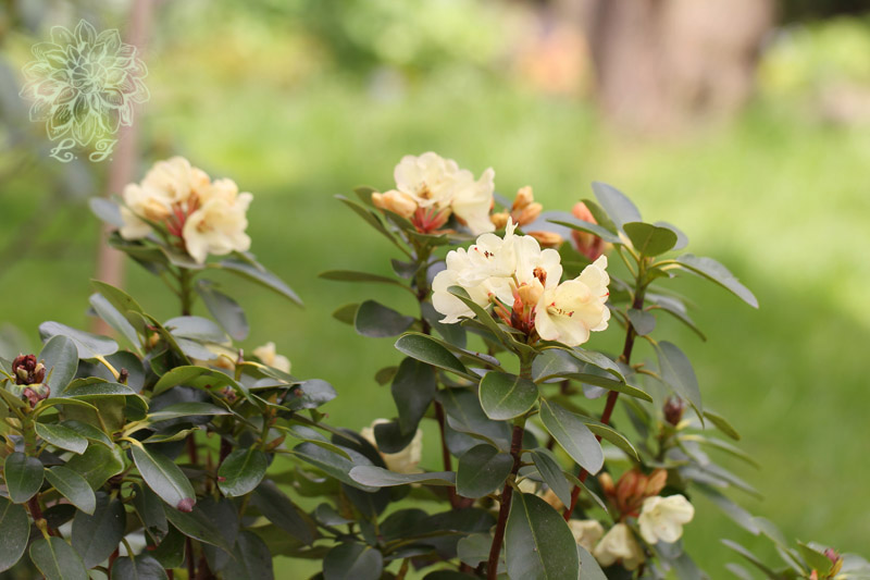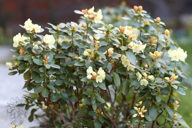 Selekcjoner: Hans Hachmann, Niemcy (wprowadzenie do handlu: 1983) Pokrój: kulisty Siła wzrostu: umiarkowana... po 10 latach dorasta do około 1,10 m wysokości i około 1,20 m szerokości Liście: jasnozielone, lekko błyszczące... jajowate... o długości około 7 cm Kwiaty: w pąku pomarańczowe, po otwarciu czysto żółte, następnie cytrynowożółte z nielicznymi purpurowymi cętkami na górnym płatku... dzwonkowate... średnica pojedynczego kwiatu około 5 cm... zebrane po 9-12 sztuk w luźne, wierzchołkowe kwiatostany Termin kwitnienia: pierwsza połowa maja Mrozoodporność: do -20 °C (Hachmann)/ -23 °C (ARS) ---> zaleca się okrywanie na zimę Wyróżnienia: Srebrny Medal: BUGA Berlin 1985