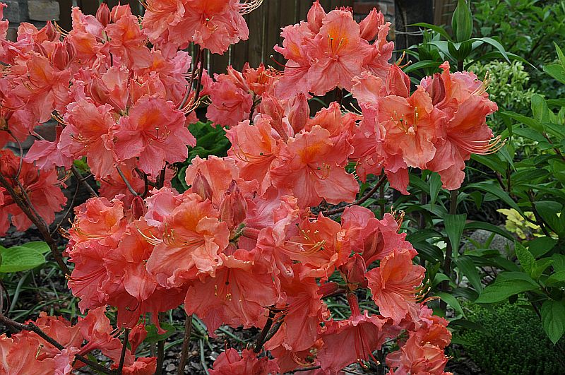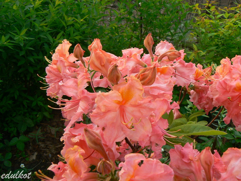 Sarina, to azalia nie przez wszystkich lubiana. Ma dość jaskrawe barwy - połączenie pomarańczu z kolorem łososiowym niektorym nie pasuje. Ja nie mam tego problemu- mi tam pasuje. B) Jak wiele moich azalii kwitła w tym roku bardzo skromnie, mimo,ze rosnie przy hostowisku i była stale nawadniana.