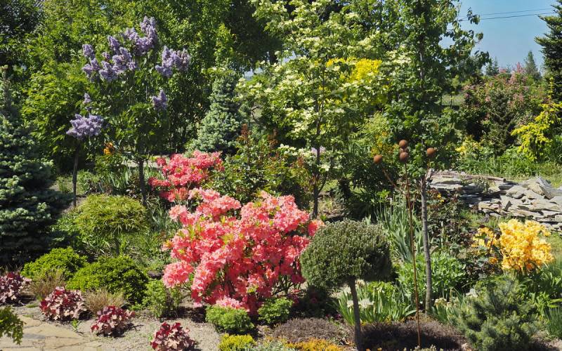 Kilka kroków dalej znajduje się drugi egzemplarz 'Sariny' jeszcze bardziej mikrego wzrostu, ale i on zachwycał równie pięknymi kwiatami