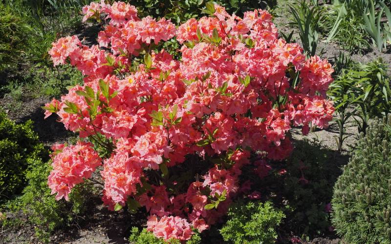 Azalia wielkokwiatowa Sarina - trzy letni krzew, słońce we wczesnych godzinach przed południem, większość dnia w półcieniu.