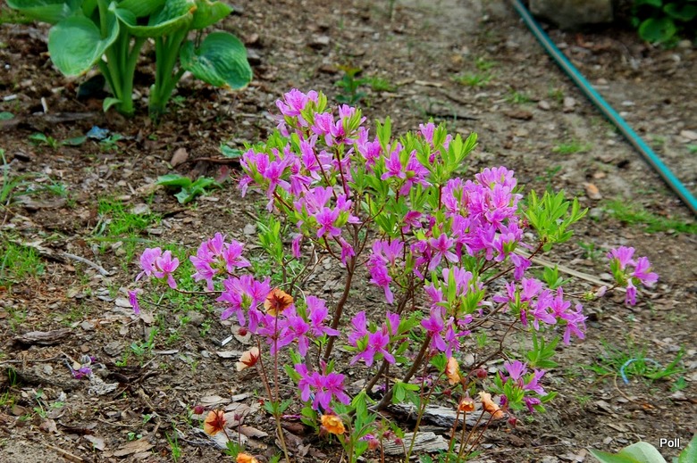 Nie wiem, jakim cudem azalie 'Fraseri' to zrobiły, ale podczas przymrozków (-7C!!!) nie straciły ani jednego pąka, czy kwiatu, choć rośliny obok rosnące ucierpiały. :woohoo: Kwitną, jakby nic się nie stało.