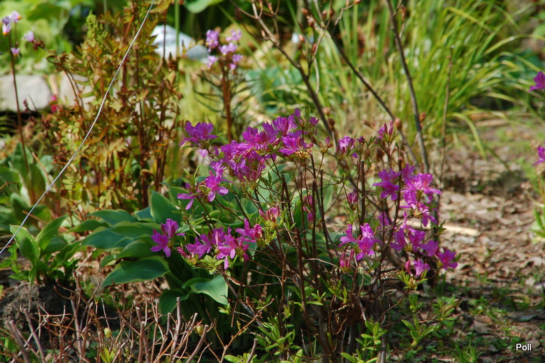 Wszystkie azalie 'Fraseri' niezawodnie zakwitły. Niestety, od kilku dni nie widać słońca na niebie, więc zdjęcia sa dość ciemne