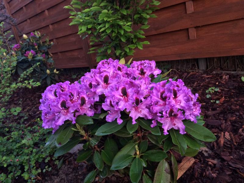 " Rododendron dorasta po 10 latach do ok 120-150cm, mrozoodporność do ok -22 °C, kwitnie w połowie maja".