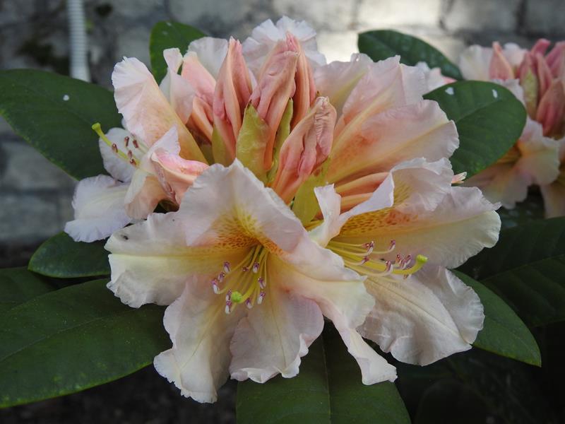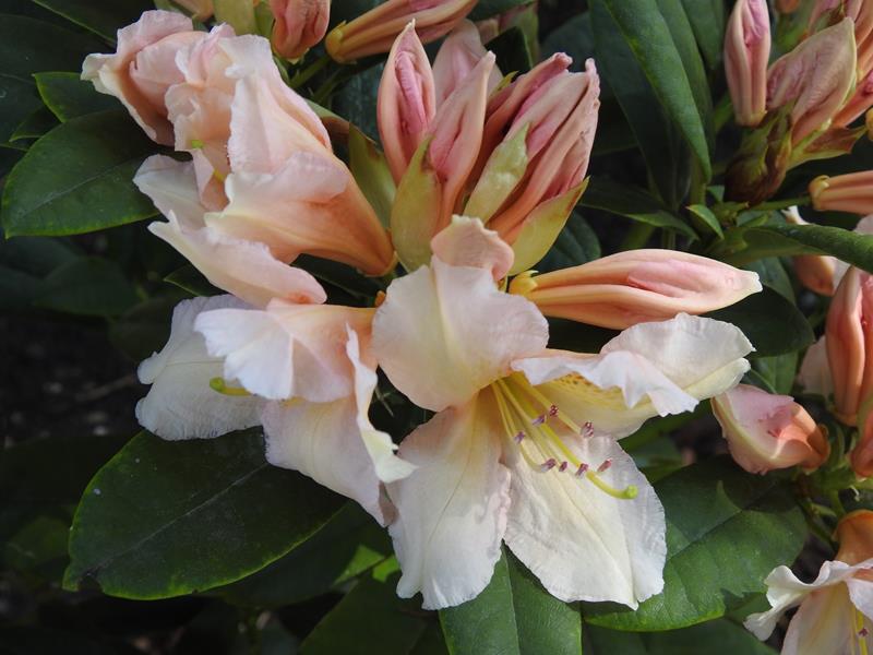 Kwiaty: w pakach delikatnie różowe, rozwinięte: kremowo białe z różowo żółtym cieniowaniem na górnym płatku, lejkowate, 6-7,5 cm średnicy, zebrane po 9-12 sztuk na wierzchołkach pędów w szerokie, kuliste kwiatostany