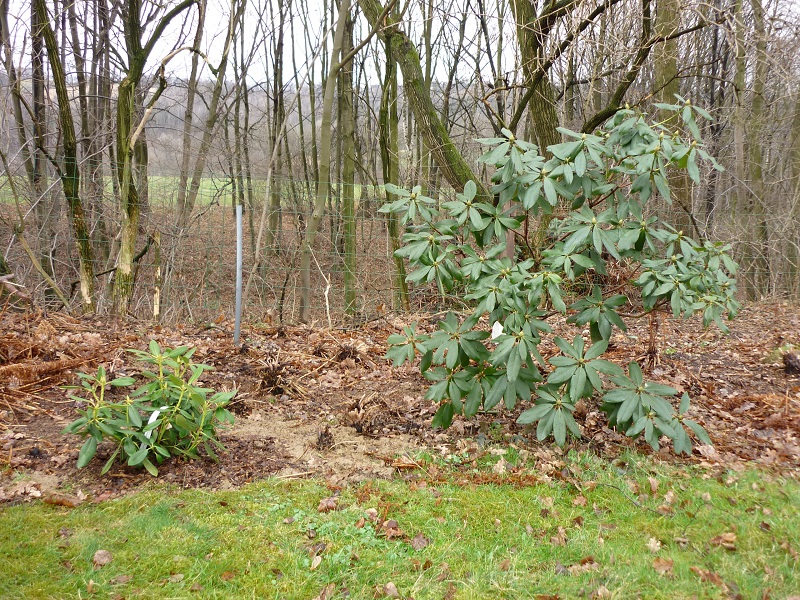 Dziś posadziłam go pod lasem, w towarzystwie paproci i Rh Nova Zembla. Stanowisko będzie miał cieniste, ziemię gliniasto-liściastą.