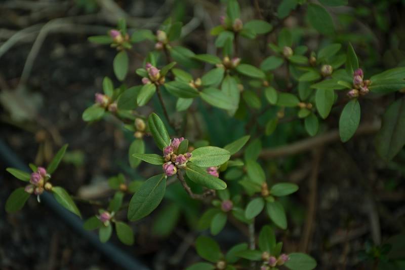 Rodzice: ('Rh minus f. album x Rh 'Cornell Pink') x (Rh dauricum f. album x Rh dauricum )