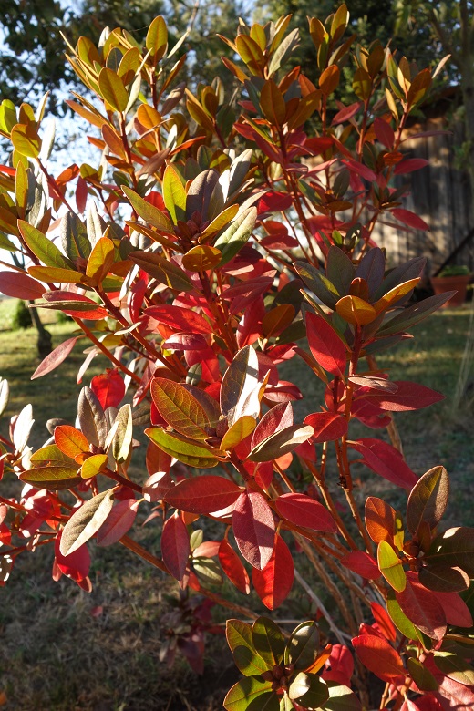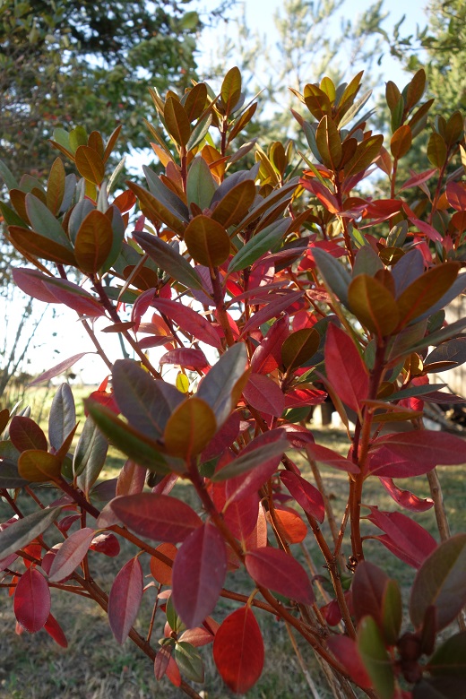 Liście: ciemnozielone, błyszczące, skórzaste... łuskowate (młode łuski zielonkawe, z czasem rdzawe)... eliptyczne, wypukłe... drobne, o długości od 3 do 5 cm przy szerokości do 2,5 cm... na zimę przybierają barwy brązowo mahoniowe... po potarciu wydzielają wydzielają
