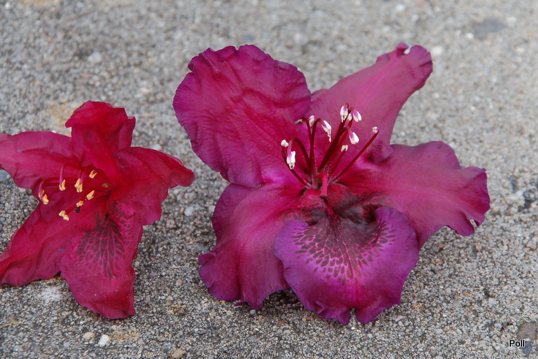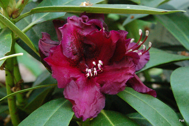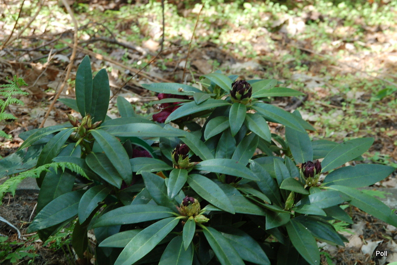 W sumie, trafiłam na tego różanecznika zupełnie przypadkowo, szukając u Hachmanna zupełnie innych odmian. Opis nie był jakiś specjalnie ciekawy, ale w połączeniu z nazwą dawał nadzieję, że trafiłam na coś niezłego. Przyjechał ładnie zapakowany, związany, aby żaden z licznych paków nie uszkodził się w przesyłce. Dostał najlepsza miejscówkę z wszystkich różaneczników z tej dostawy - zasobne, dość wilgotne i półcieniste miejsce na osłoniętym hostowisku. Gdy zaczęły się rozwijać pąki, zafascynowana patrzyłam na ich kolor . Jest czarnofioletowy, najciemniejszy, jaki widziałam u różaneczników, więc z niecierpliwością czekałam na pierwszy rozwinięty kwiat.