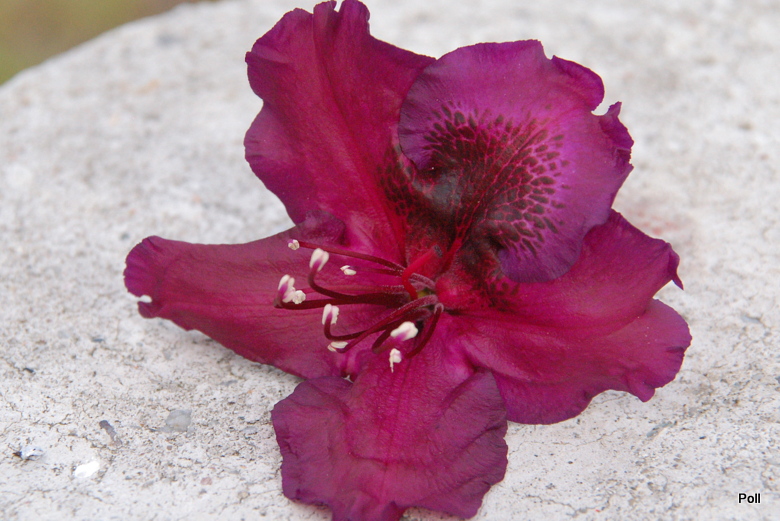 Nie zawiodłam się! Jak napisałam, nie mogę ując tej barwy aparatem. Nie jest fioletowy. Nie jest bordowy. Na brzegach purpura podbita fioletem, który ją przyciemnia. Im bliżej gardła, ciemna czerwień staje się coraz wyraźniejsza a czarne cętki dramatycznie przyciemniają całość. Nazwa nadana przez Hiogera Hachmanna jest idealna!