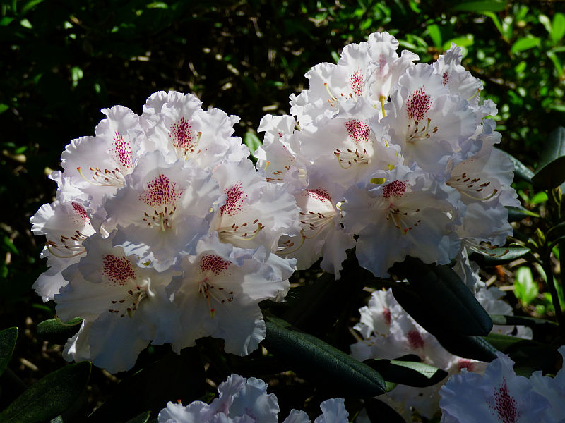 Kwiaty: w pąku jasnoróżowoliliowe, po otwarciu jasnoliliowe, z czasem białe z delikatną różowawą tonacją i z wyraźnym, winnoczerwonym rysunkiem na górnym płatku... brzegi płatków mocno pofalowane... średnica pojedynczego kwiatu od 6 do 6,5 cm... zebrane po 11-18 sztuk w duże i szerokie, wierzchołkowe kwiatostany