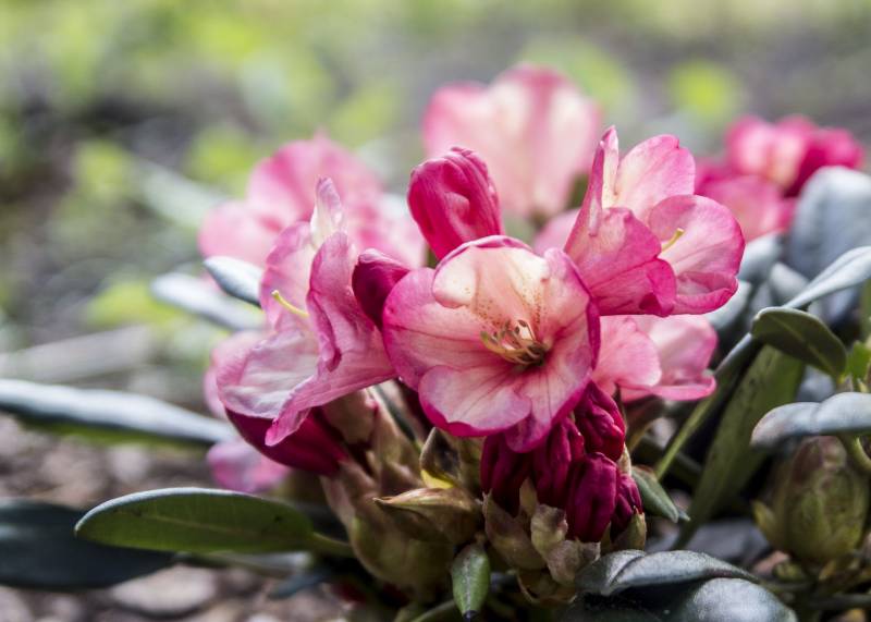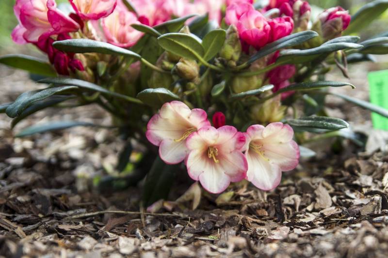 Kwiaty: w pąku różowe z nutą pomarańczową, po otwarciu dwukolorowe, pomarańczowo różowoczerwonawe krawędzie i jasnożółte centrum z nielicznymi, bardzo słabo zaznaczonymi cętkami na górnym płatku... brzegi płatków lekko pofalowane... dzwonkowate... średnica pojedynczego kwiatu do 5,5 cm... zebrane po 6–8 sztuk w luźne, wierzchołkowe kwiatostany