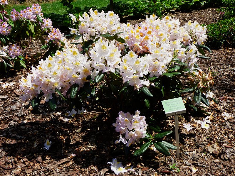 Madame Jules Porgès należy do tych późno kwitnących... 1 czerwca kiedy to większość rododendronów w Wojsławicach okres świetności miała już za sobą, on dopiero się rozkręcał;
