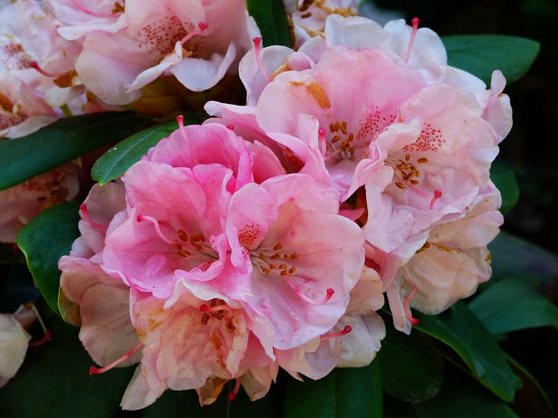 Pochodzenie: Szkółka D. Heinje, Niemcy (wprowadzenie do handlu: 1965) Pokrój: poduszkowaty Siła wzrostu: roślina wolnorosnąca... po 10 latach dorasta do około 0,70 m wysokości i około 1,20 m szerokości Liście: ciemnozielone... eliptyczne Kwiaty: w pąku jasnoczerwone, po otwarciu różowe, z czasem jaśniejące do niemal białego z delikatnym, czerwonawym rysunkiem na górnym płatku... brzegi płatków pofalowane... zebrane w kuliste, wierzchołkowe kwiatostany Termin kwitnienia: przełom maja i czerwca Mrozoodporność: do -18 °C (Heinje)