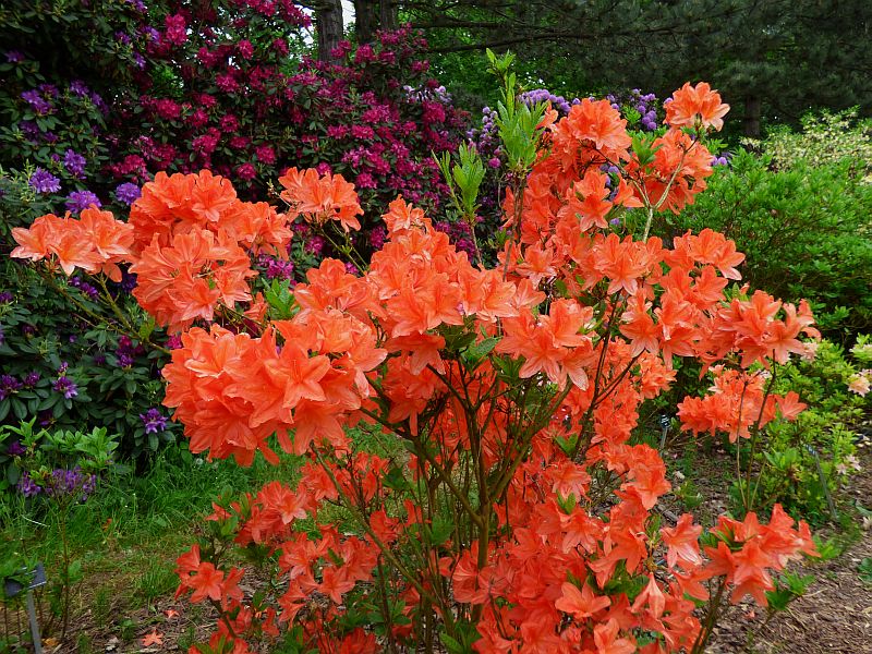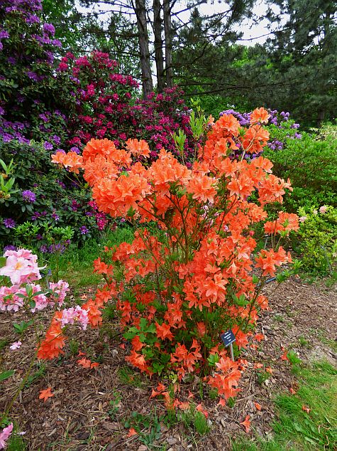 Selekcjoner: Waterer, Wielka Brytania (wprowadzenie do handlu: 1952) Pokrój: rozłożysty, wzniesiony Siła wzrostu: bardzo duża... po 10 latach dorasta do około 1,80 m wysokości i około 1,60 m szerokości Liście: sezonowe, jasnozielone Kwiaty: intensywnie pomarańczowe z nutą czerwieni na obrzeżach i wyraźną, ciemnopomarańczową plamką na górnym płatku... lejkowate, szeroko otwarte... średnica pojedynczego kwiatu około 6 cm... zebrane po 8-14 sztuk w szerokie, wierzchołkowe kwiatostany Zapach: niewyczuwalny Termin kwitnienia: przełom maja i czerwca Mrozoodporność: ?