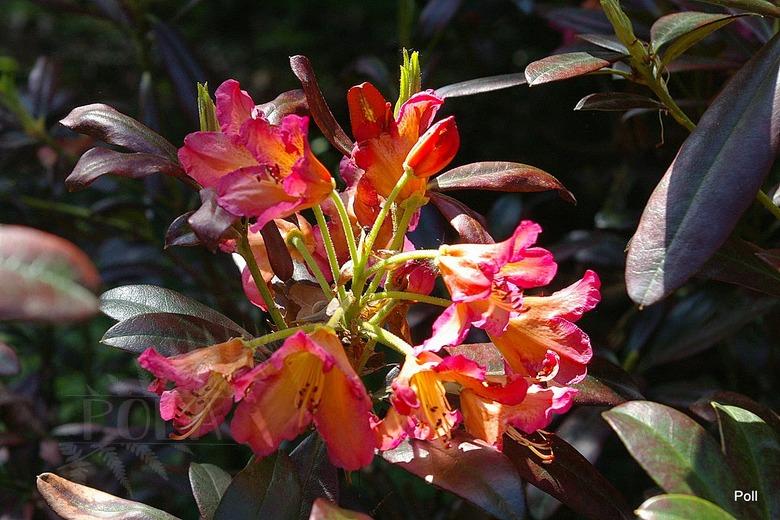 Pochodzenie: NN (wprowadzenie do handlu: 1975) Pokrój: gęsty, zwarty Siła wzrostu: roślina wolnorosnąca... po 10 latach dorasta do około 1 m wysokości Liście: ciemnozielone i błyszczące Kwiaty: w pąku czerwonawo pomarańczowe... po otwarciu wielobarwne, jasnopomarańczowe centrum z wyraźnym, winnoczerwonym rysunkiem na górnym płatku i czerwonawo różowymi, pofalowanymi krawędziami... lejkowate... zebrane po około 10 sztuk w wierzchołkowe kwiatostany Termin kwitnienia: połowa maja Mrozoodporność: do -18 °C (ARS)/ -21 °C (Salley & Greer) ---> zaleca się sadzenie tylko w cieplejszych rejonach kraju, na stanowiskach osłoniętych oraz okrywanie roślin na zimę