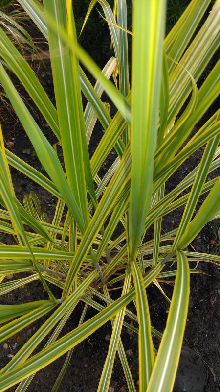 Liście w podłużne paski różnej szerokości i o różnym zabarwieniu (młode o mocniejszej barwie) - od złotożółtych po kremowe- starsze, Bardzo ładnie przewieszające się.