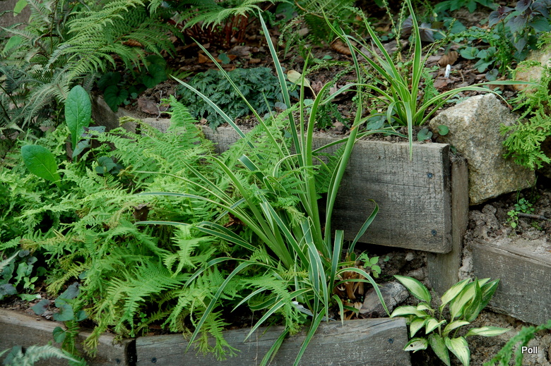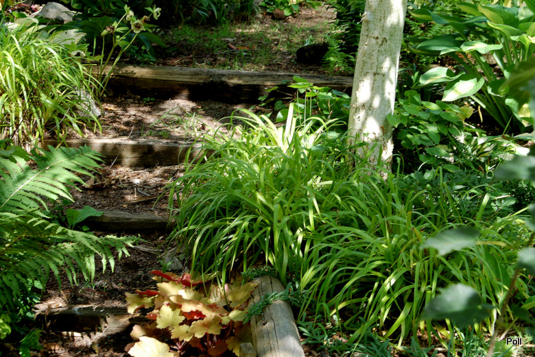 Tak na marginesie, to jestem szczęśliwa, że istnieje taka żółta trawa, która potrafi rosnąć w cieniu a nawet tego cienia potrzebuje, by nieźle wyglądać. Próbowałam uprawy różnych traw na hostowiskach np kłosownicy leśnej ( jak to napisał Paweł, chyba Bóg mnie opuścił, gdy ją sadziłam 2smiech ), ale miały więcej wad, niż zalet i zawsze sprawiały jakieś kłopoty. Tylko ta luzula i hakonechloe są bezproblemowe i nadają nieco lekkości hościano-paprocianym nasadzeniom.