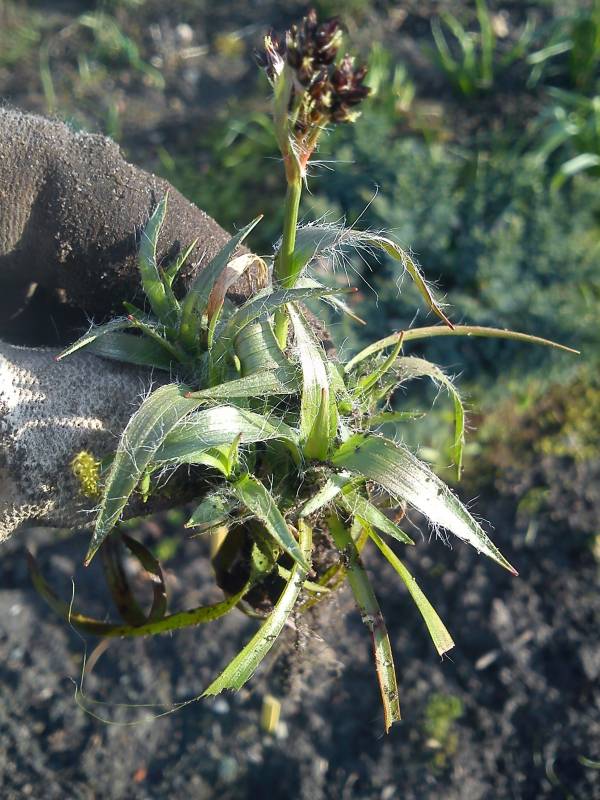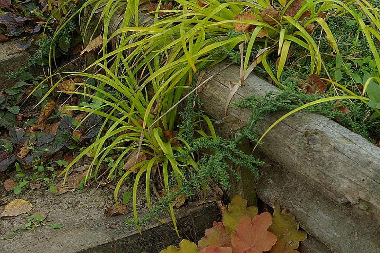 Luzula sylvatica, również gatunek, jak w poście Konrada. Rosnie u mnie od wielu lat...Wiedziałam, że gdzies jest, al e znaleźć nie mogłam rotfl Okazało się, że wysadziłam ja za skalna górką, pod jakieś płożace iglaki.Roslina z rodzaju "wysadzisz, samo rośnie'. Niepodlewana, nieczyszczona krecigl , odporna, jak licho. Zero wymagań.Nie rozłazi się, trzyma się kępy.