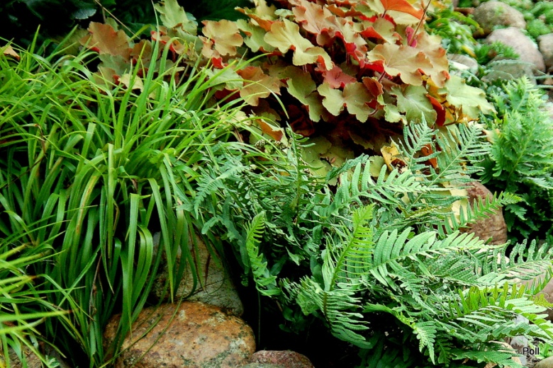 Edytko, to prawda... Kosmatka nie jest agresywna - widać to chyba na każdym zdjęciu a szczególnie na zdjęciu Andrzeja w pierwszym poście. Rozłogi są krótkie i każde następne 'serce' rośliny wyrasta w obrębie kępy. Zazwyczaj dzielę sadzonki na takie, które mają 2-3 serca - na zdjęciu widać świeżo posadzoną w tle nerecznicy mocnej Insubrica