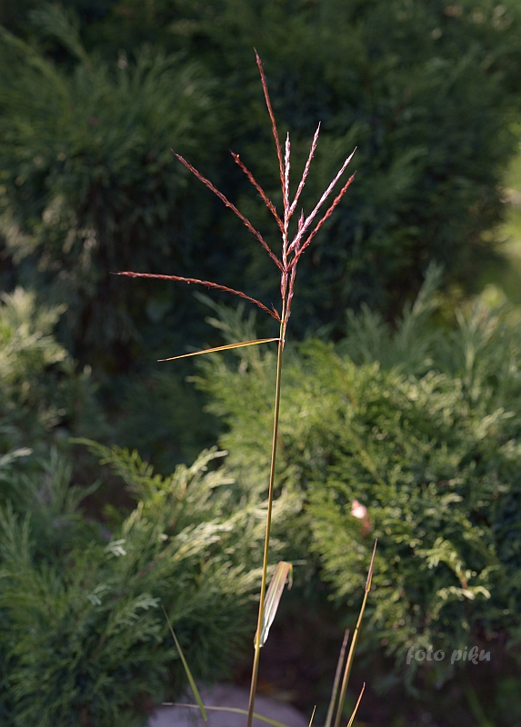 Wysokość: osiąga 1,4-1,6m wys. Kwiatostan: jasny, srebrzysty. Kwitnie wrzesień-październik. Liście: zielone z białym żebrem wzdłuż liścia, wąskie, przewieszające się. Wymagania: ziemia umiarkowanie żyzna do żyznej, raczej wilgotna, stanowisko słoneczne do lekko cienistego. Mrozoodporność: dobra.