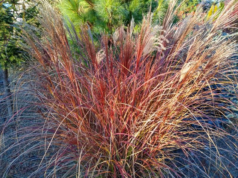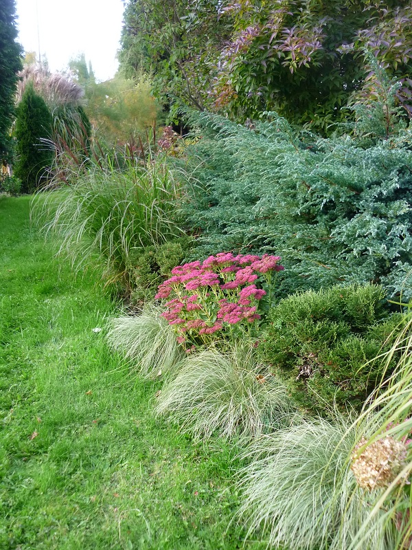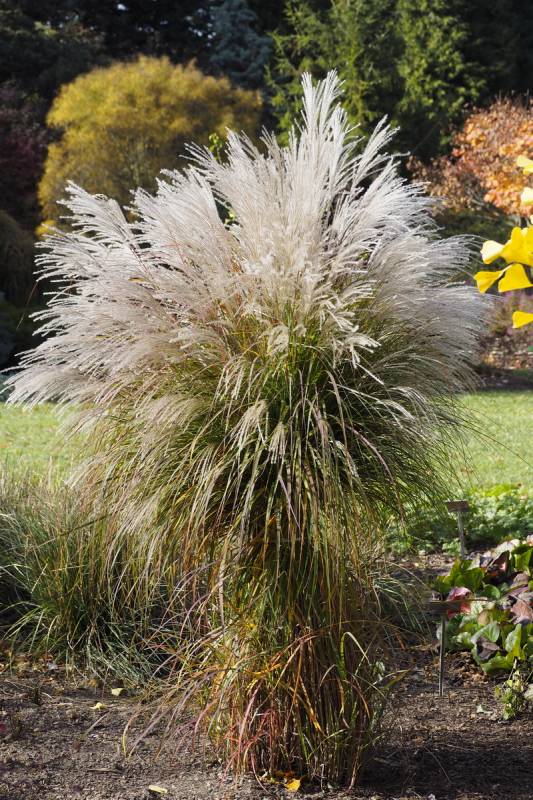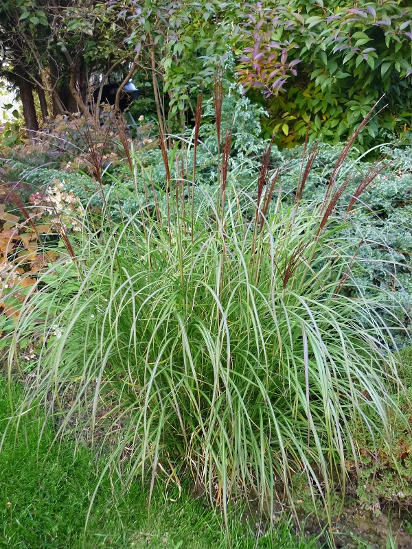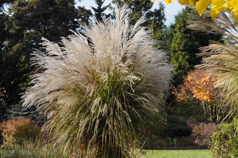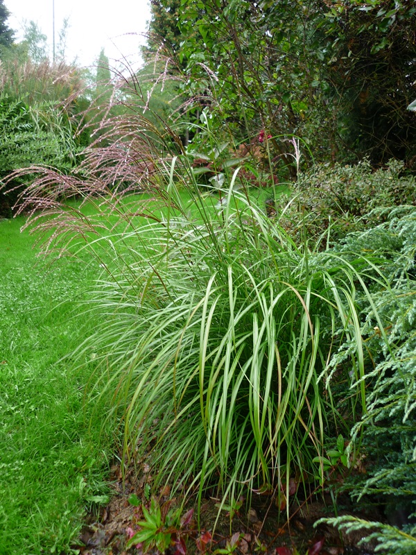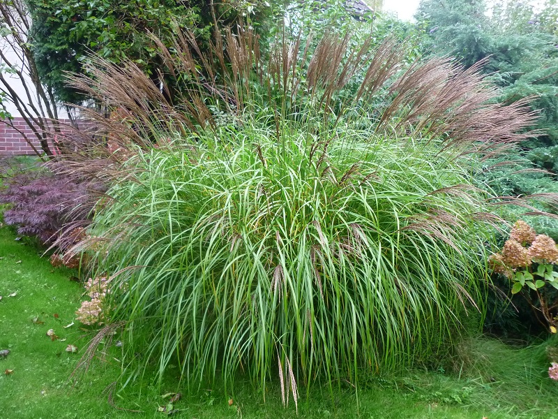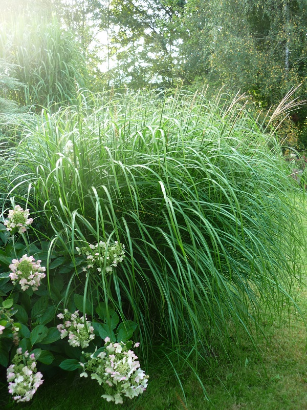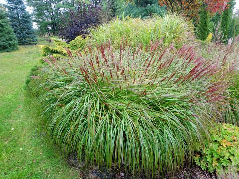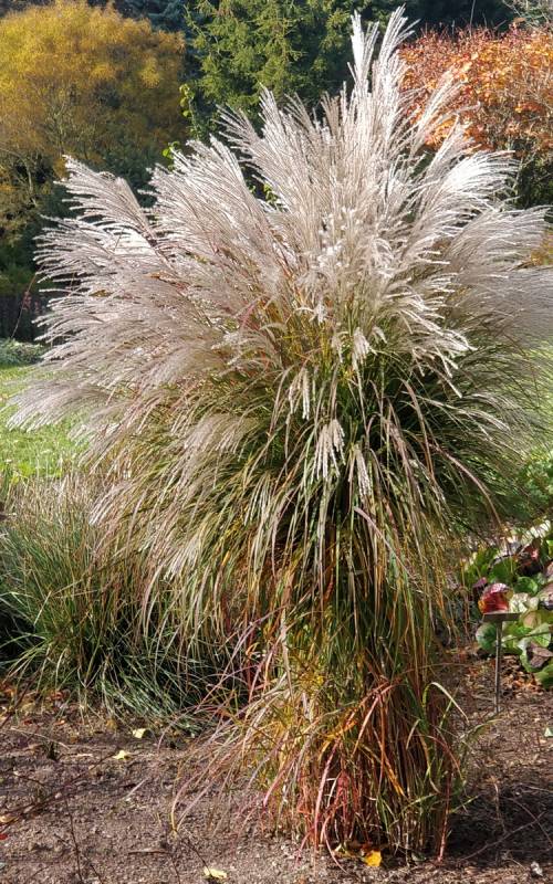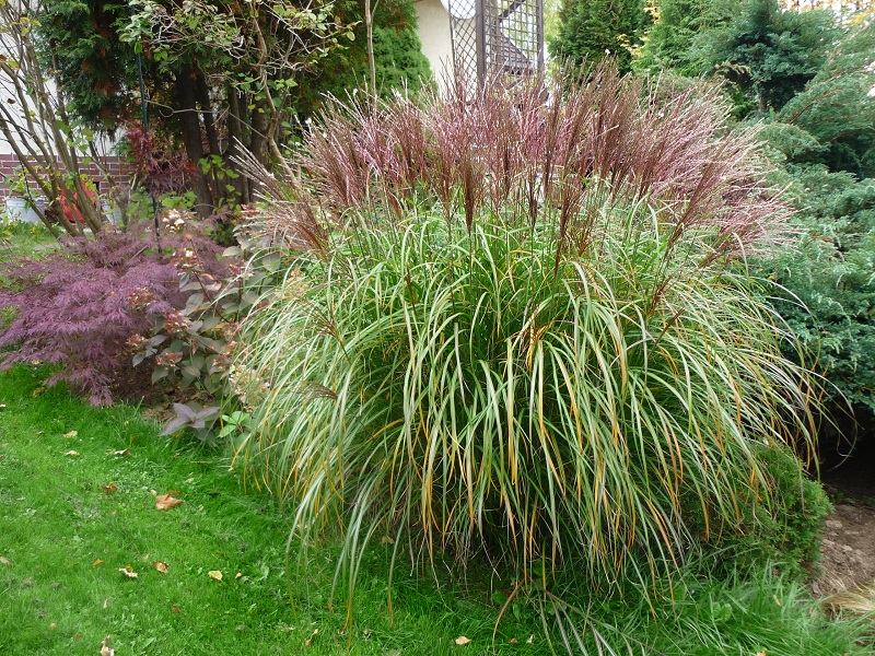 Uwagi w grupie miskantów nadaje się na pierwszy plan ze względu na kształt kępy, doskonały jako niski soliter !