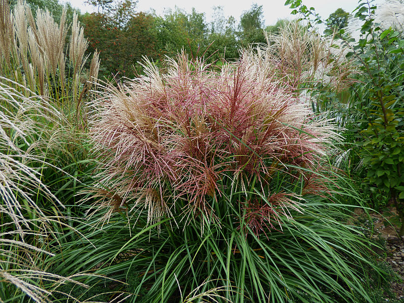 Miscanthus sinensis 'Polonus' w ogrodzie pokazowym przy Szkółce Roślin Ozdobnych DAGLEZJA w Rykach